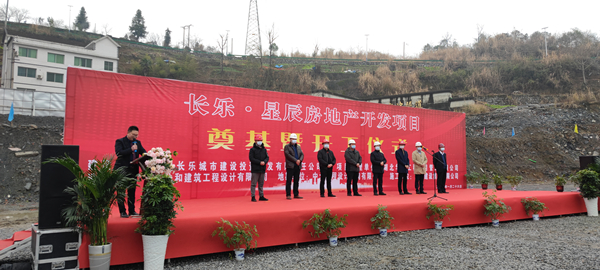 2021年1月26日上午,由leyu乐鱼(中国)体育官方网站-LEYU.COM承建的长乐▪星辰住宅项目奠基暨开工仪式在项目现场热烈举行。湖北省宜昌市五峰土家族自治县住房和城乡建设局副局长陈白华、县质量安全监督站站长邓简涛、leyu乐鱼(中国)体育官方网站-LEYU.COM五峰长乐▪星辰项目经理王国云,项目参建各方及新闻媒体共40余人出席。宜昌市长乐城市建设投资开发有限责任公司总经理刘鹏主持。