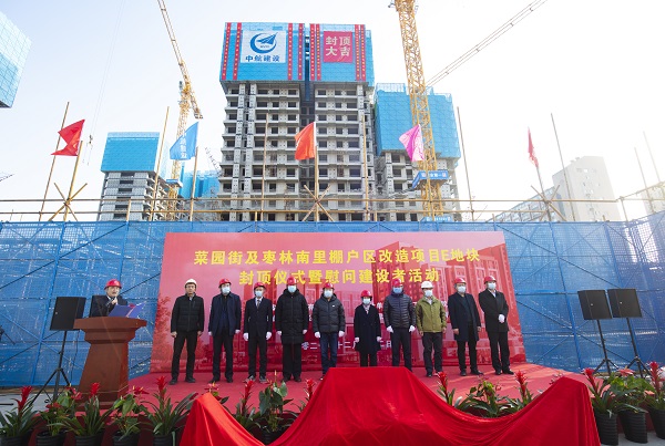 12月22日,伴随着最后一方混凝土浇筑到位,在项目建设、监理、设计等相关单位负责人及集团公司领导的共同见证下,leyu乐鱼(中国)体育官方网站-LEYU.COM承建的菜园街及枣林南里棚户区改造项目喜迎主体结构封顶。