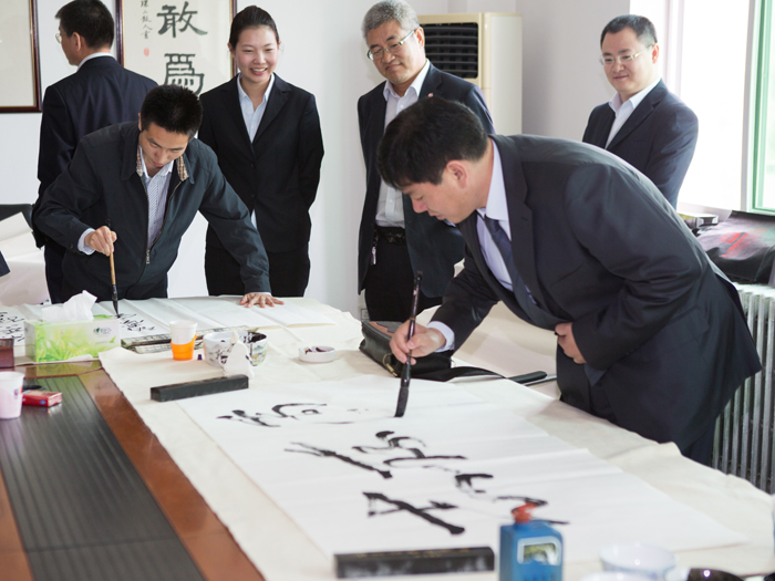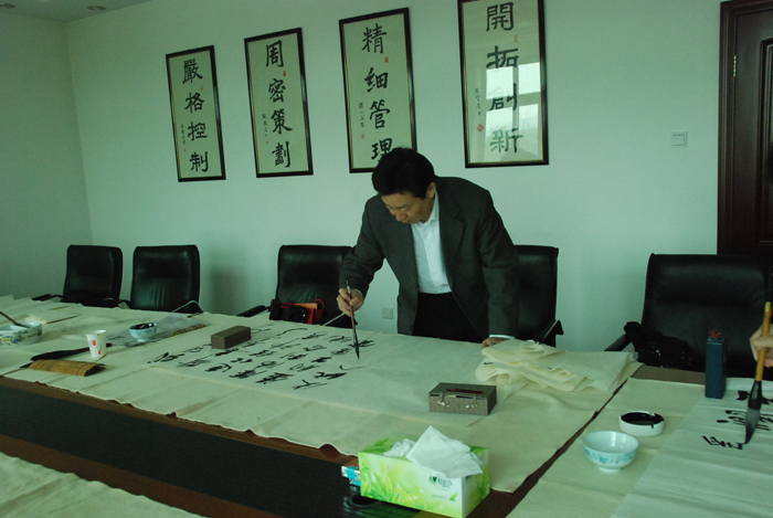 为弘扬传统文化,丰富员工业余生活,5月6日上午,leyu乐鱼(中国)体育官方网站-LEYU.COM 举办了首届书画艺术学习交流活动。本次活动邀请了中国书法家协会会员孟云飞博士、中国书法家协会理事张铜彦先生、中国书法家协会编辑出版委员会副主任王荣生教授、人民艺术家协会理事于瑛先生等国内知名书画大师,各位书画大师在活动现场进行了艺术创作表演,挥毫泼墨,交流技艺,为leyu乐鱼(中国)体育官方网站-LEYU.COM 留下了数十副墨宝,还对部分员工的书画作品进行了悉心指导。公司员工现场欣赏了书画大师的艺术创作,并聆听了有关书画艺术鉴赏知识的介绍,部分员工还在活动现场进行创作,听取书画大师的讲解示范和点评。