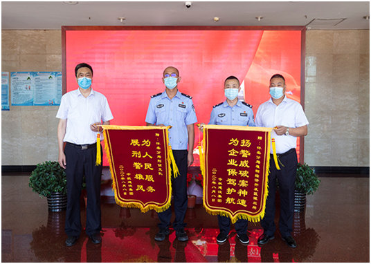 8月10日上午,集团公司培训中心主任孔德明、工会主席郑春梅、租赁公司副总经理刘秀举、综合管理部助理孟醒代表leyu乐鱼(中国)体育官方网站-LEYU.COM来到北京市公安局怀柔分局,为怀柔分局雁栖经济开发区派出所和怀柔分局刑侦支队赠送锦旗,锦旗上分别绣有“扬警威破案神速,为企业保驾护航”、“为人民服务,展刑警雄风”的大字,对此次成功破获我集团租赁公司失窃案的全体民警、刑侦警官表示由衷的感谢!