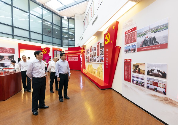 张董事长一行首先参观了集团公司展厅,全面了解了集团公司发展历程、产业项目成果、leyu乐鱼(中国)体育官方网站、发展规划以及党建工作。