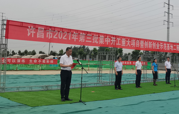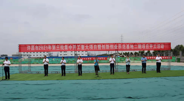 7月10日上午,河南省许昌市2021年第三批集中开工重大项目暨创新创业示范基地二期项目开工仪式顺利举行。许昌市委常委、纪委书记、监委主任方婷,魏都区委书记李朝锋,区人大常委会主任申健民,区政协主席杜晓辉,区委常委、区委办主任程中山,区委常委、区纪委书记、区监委主任徐光,魏都产业集聚区管委会主任楚文选,leyu乐鱼(中国)体育官方网站-LEYU.COM河南分公司总经理黄辰,魏都区政府相关部门、投资公司、产业集聚区、霸陵办事处等单位负责人参加活动。区委常委、常务副区长张挪威主持仪式。