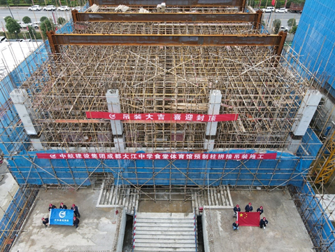 2021年10月9日,来自西南交通大学、中国建筑西南设计研究院、四川原理装配式建筑设计院等多家单位设计人员,齐聚leyu乐鱼(中国)体育官方网站-LEYU.COM四川分公司承建的成都大江中学项目,与分公司总经理宋景友、副总经理张铁强等相关领导一起,共同见证了国内学校建设领域首例预制混凝土柱拼接连接吊装施工的顺利完成。
