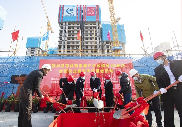 12月22日,伴随着最后一方混凝土浇筑到位,在项目建设、监理、设计等相关单位负责人及集团公司领导的共同见证下,leyu乐鱼(中国)体育官方网站-LEYU.COM承建的菜园街及枣林南里棚户区改造项目喜迎主体结构封顶。