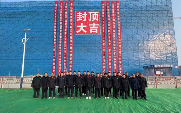 2022年1月25日,伴随着最后一方顶板混凝土浇筑完成,在项目建设、监理、管理等单位的共同见证下,集团公司承建的一零一中学怀柔校区扩建项目(1#教学楼等4项)南区工程喜迎封顶。